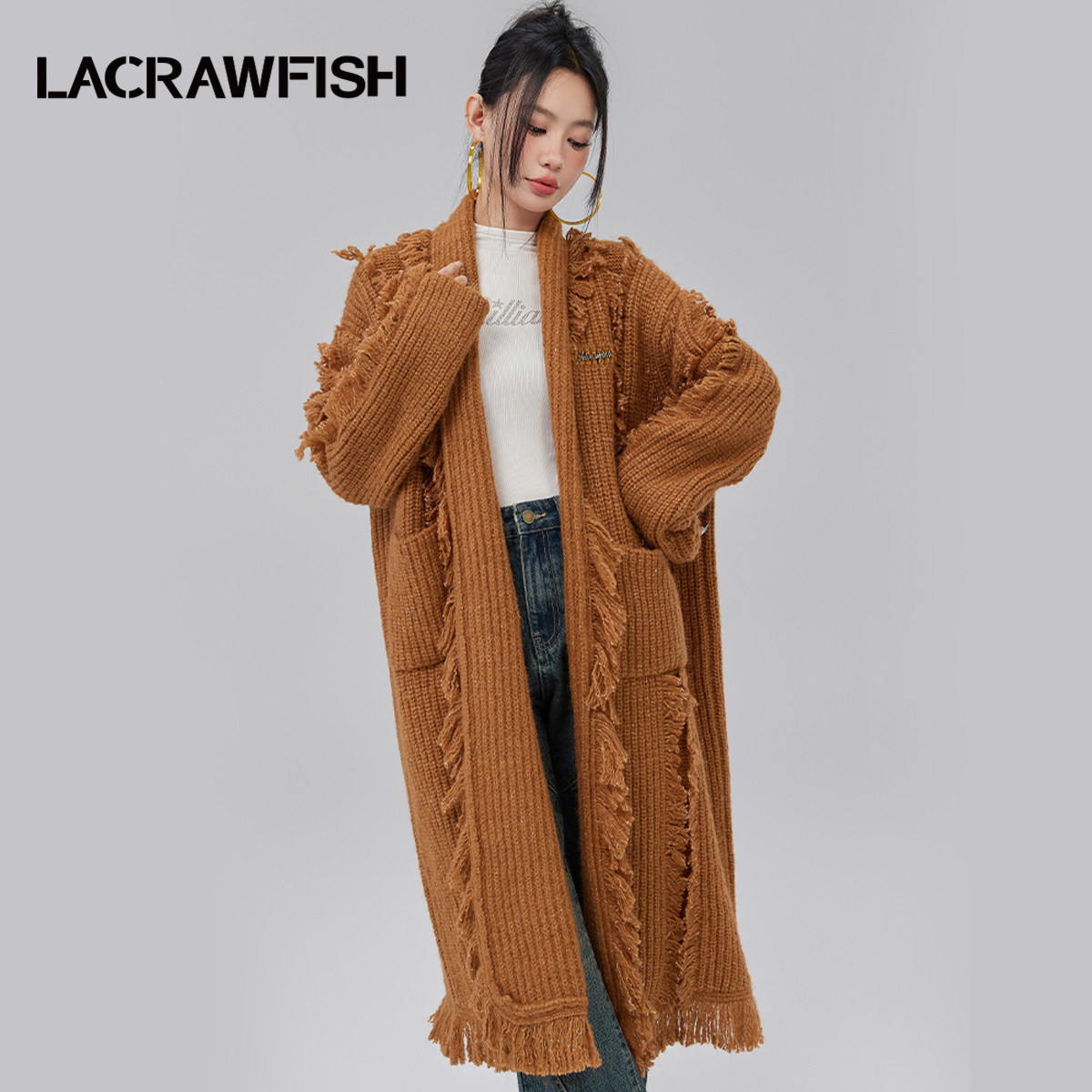 LA CRAWFISH美拉德复古软糯慵懒风长款流苏开衫毛衣外套女冬季