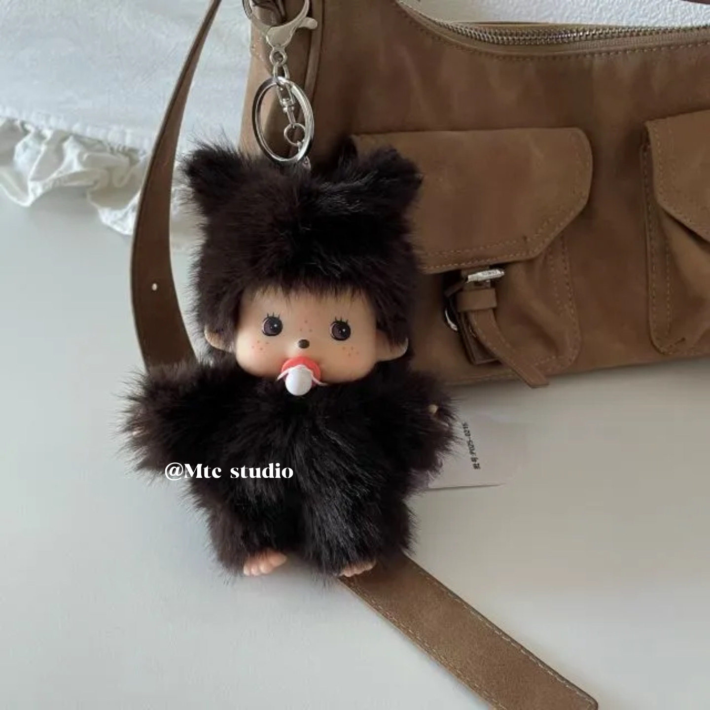 正版可爱蒙奇奇毛绒包包挂件包挂饰手绳公仔闺蜜礼物搪胶娃娃挂件