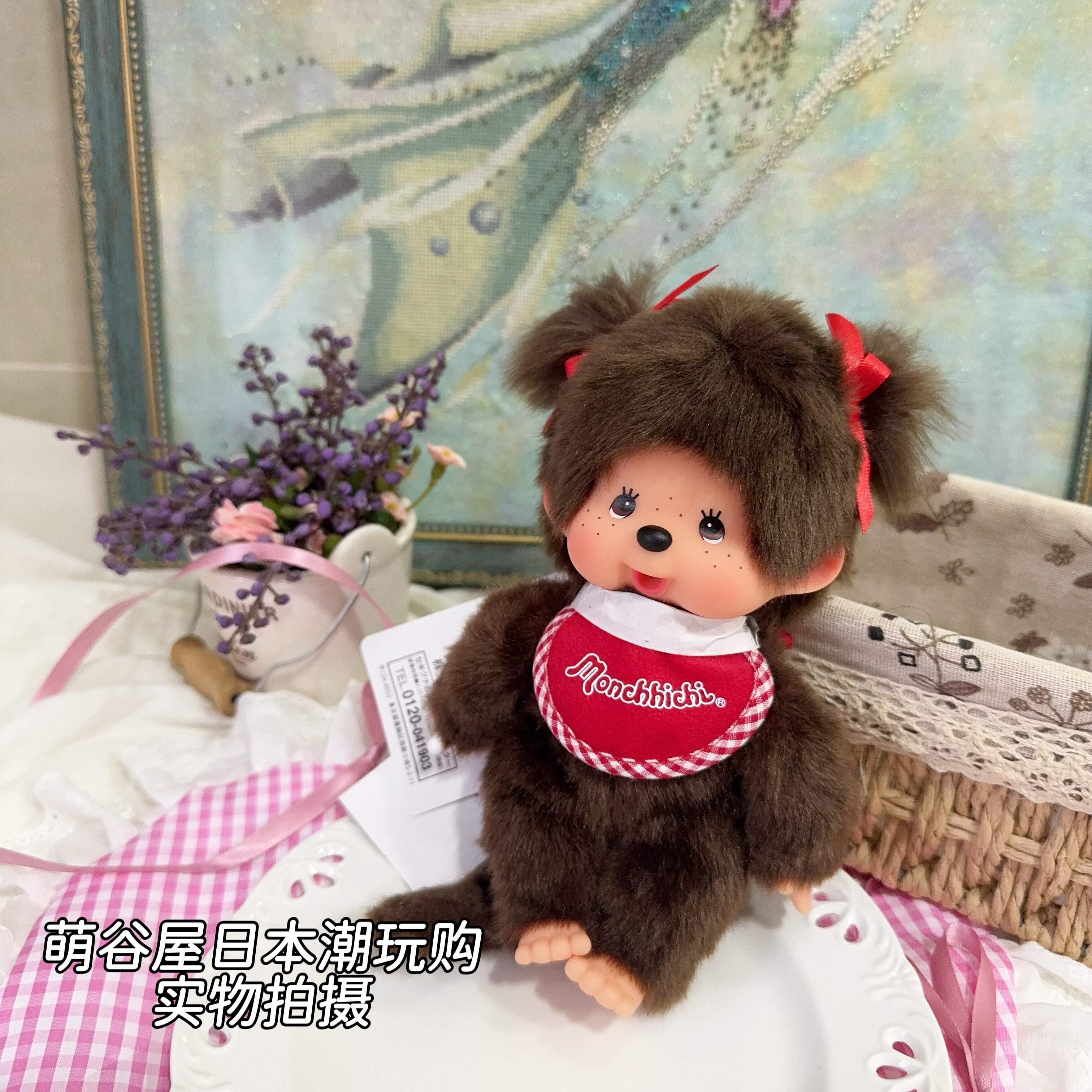 现货monchhichi日本正品蒙奇奇ss/M号男孩女孩棕色坐姿公仔
