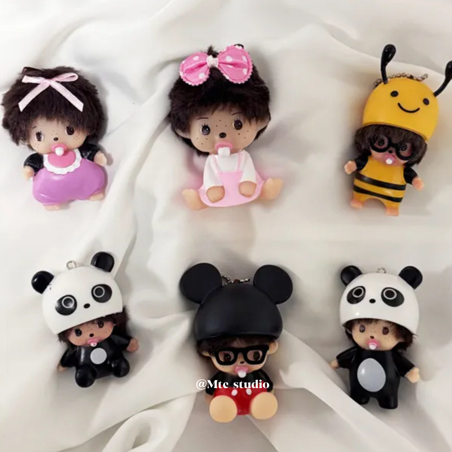 韩系ins风中古可爱蒙奇奇钥匙扣粉色kt变装卡通挂件超萌桌面摆件