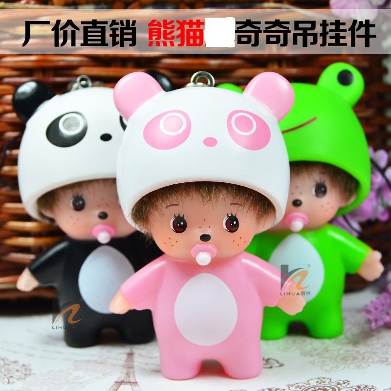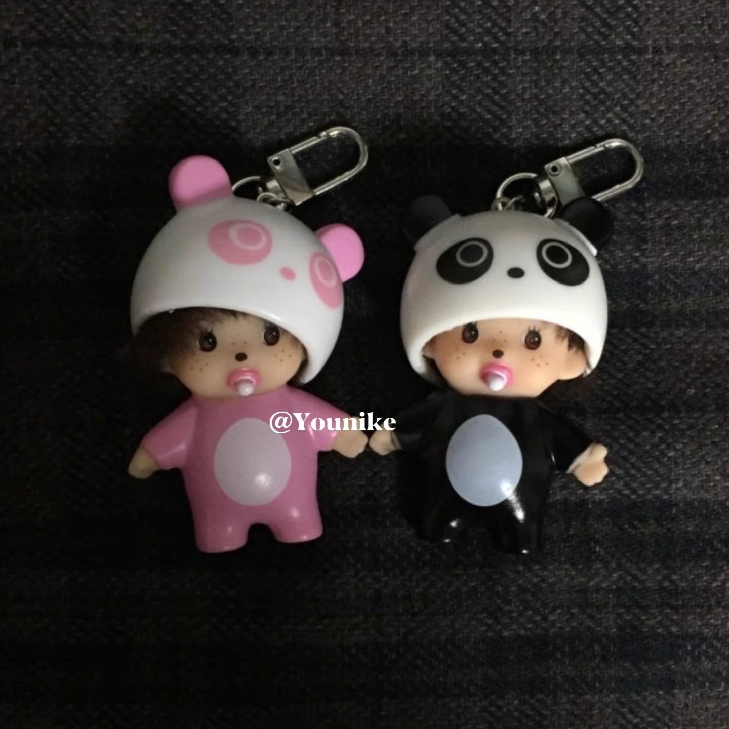 韩系ins可爱卡通蒙奇奇车钥匙扣包包挂件粉熊猫帽耳机挂件挂饰萌