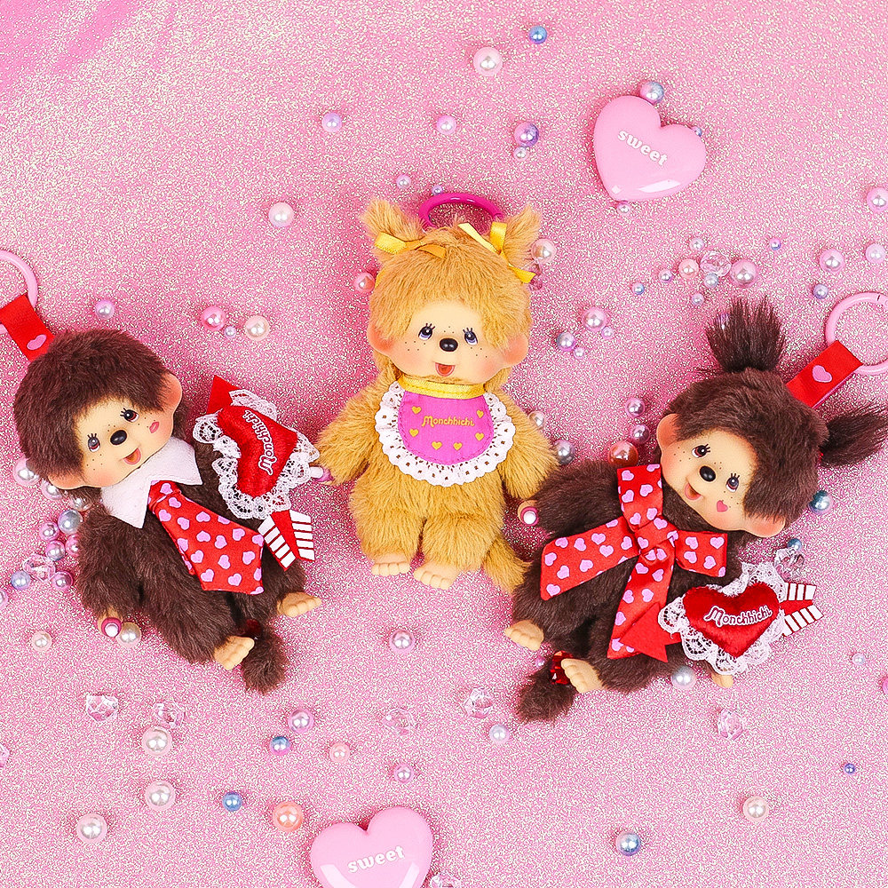 Monchhichi萌趣趣搪胶毛绒娃娃糖心密友包包挂件粉色摆件坐款潮玩