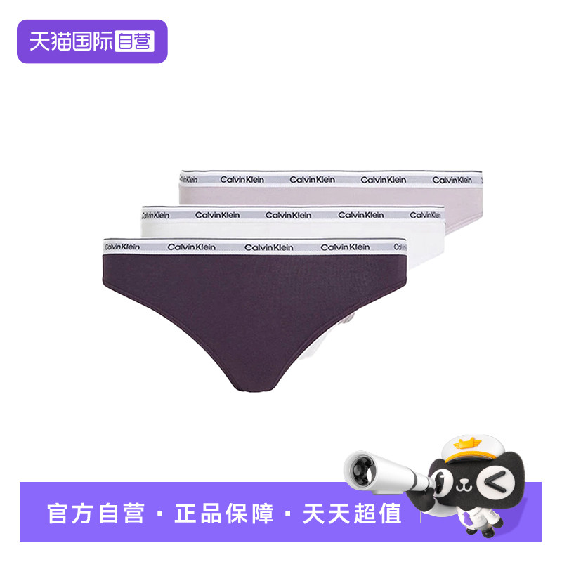 CK国内女士内衣提花腰边棉质性感比基尼三角内裤3条装QP2349O
