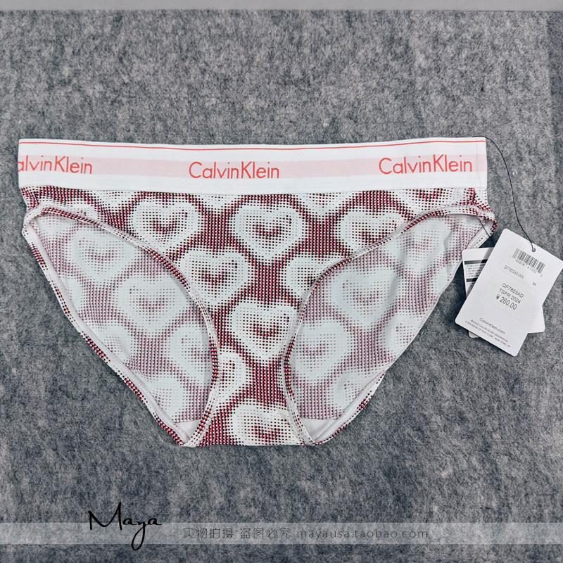 国内专柜代购 CK女士摩登引力带爱心满印宽腰边三角内裤QF7803AD