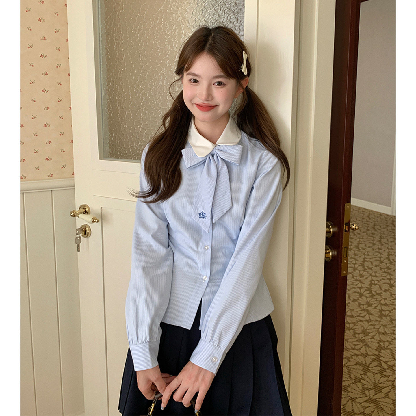 - 蝴蝶结领衬衫女