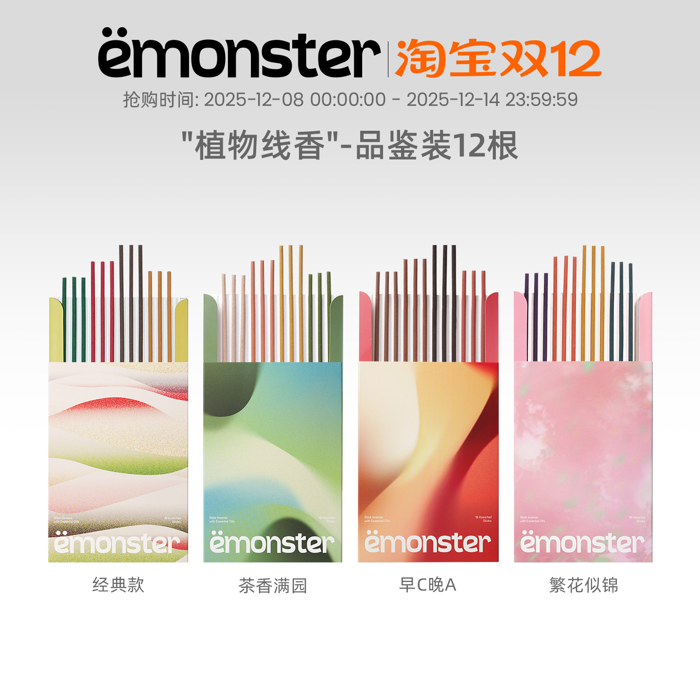 emonster线香檀香薰室内持久家用扩香熏香精油香氛高级试香装12根