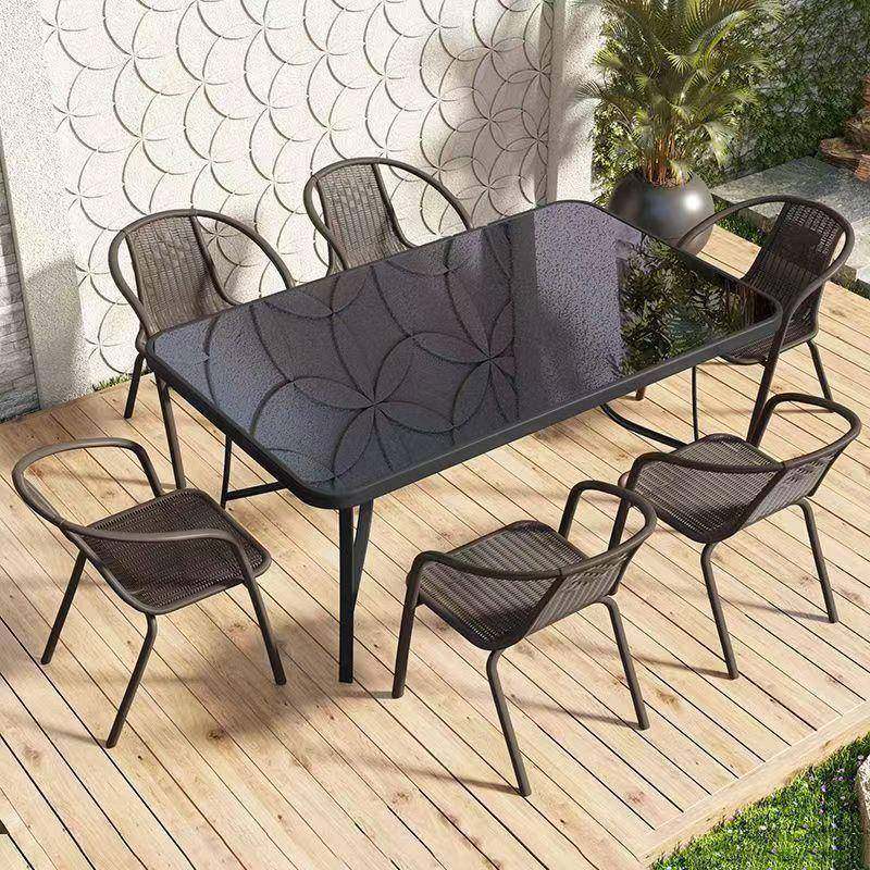 户外桌椅带伞组合庭院露天花园桌椅三件套家用室外休闲阳台折叠桌