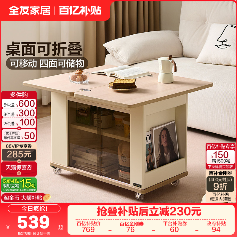 小圆桌移动茶几沙发边几胡桃木角几可折叠边桌阳台茶桌置物架桌子