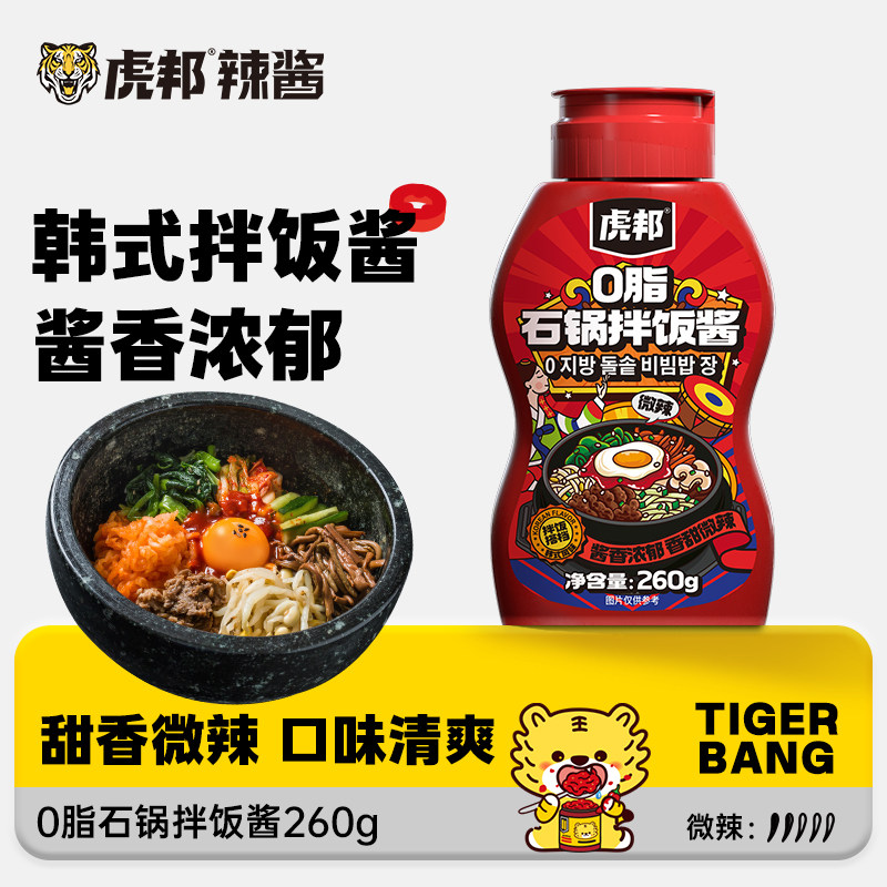 【百亿】虎邦0脂石锅拌饭酱260g经典韩式拌饭酱拌面酱火鸡面酱