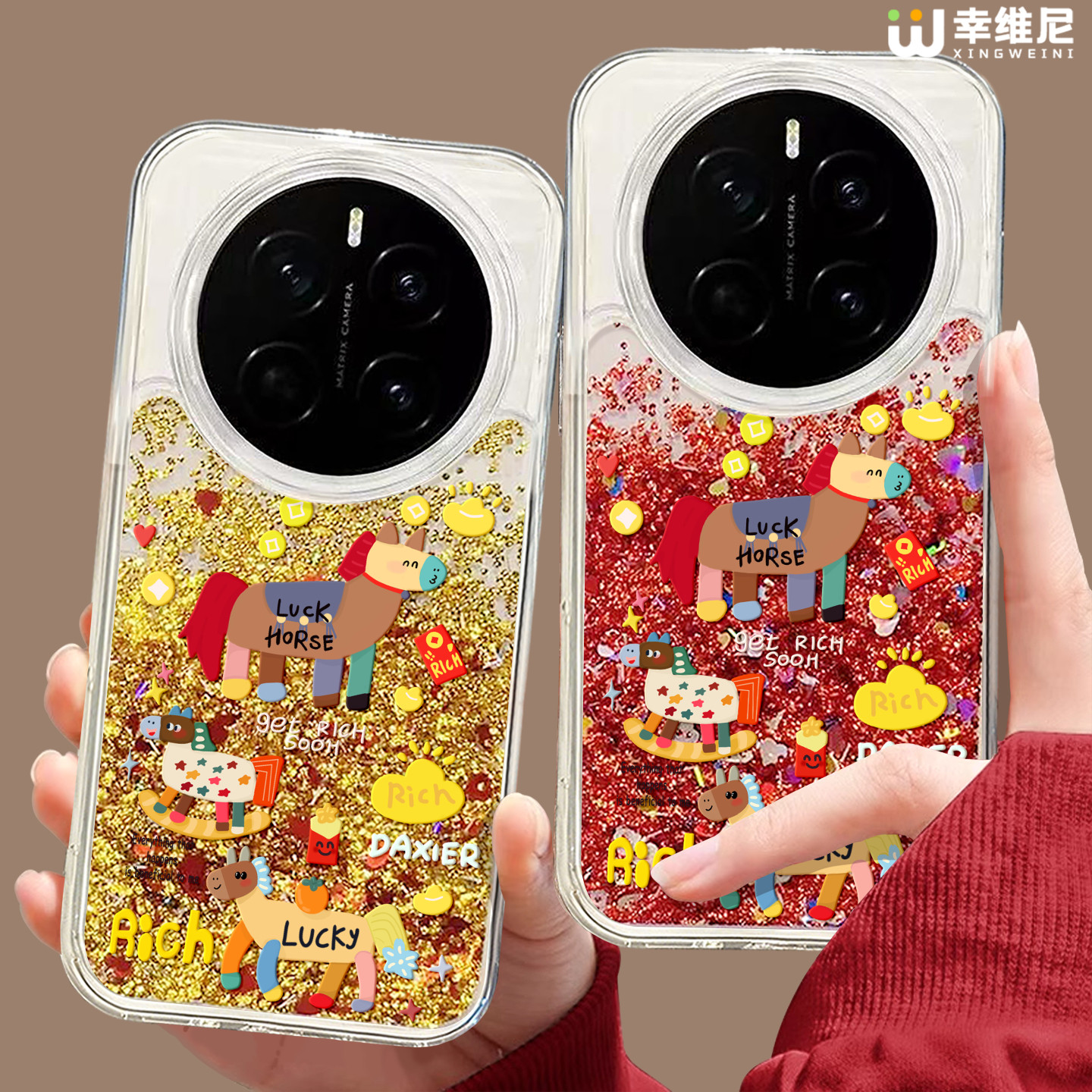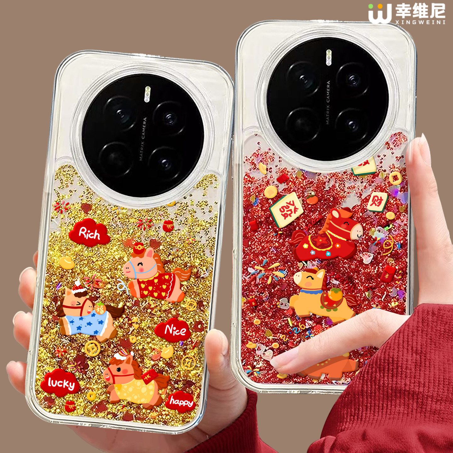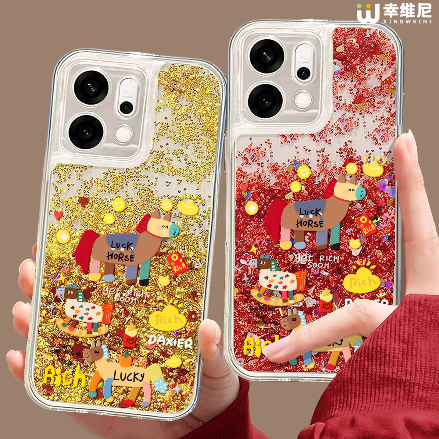 适用oppofindx9手机壳流沙金色findx8pro本命年x7ultra全包卡通马x6马年x5硅胶0pp0红色x7pro新年x3pro本命年