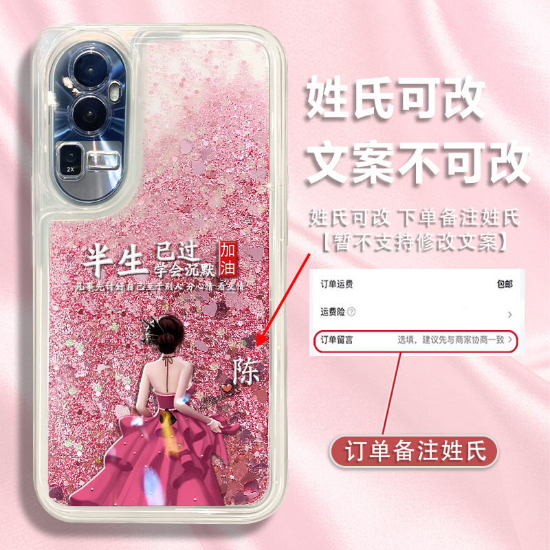 适用于opporeno10手机壳reno12保护套reno11pro硅胶reno9创意reno8姓氏定制reno7/6/5高级粉流沙防摔镜头全包