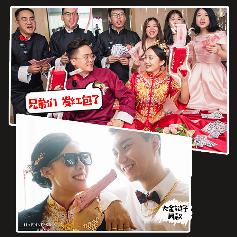 接亲小游戏结婚道具喷钱枪堵门道具撒钱枪筷子夹钞票创意迎亲道具