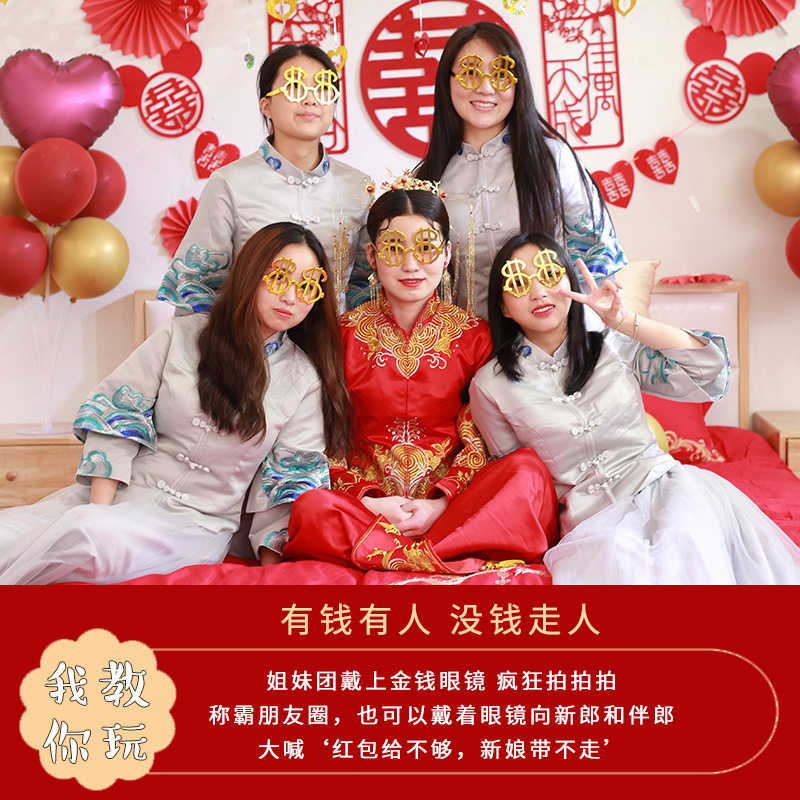 金钱眼镜结婚堵门整蛊新郎伴郎团接迎亲游戏道具姐妹团搞怪摆拍照