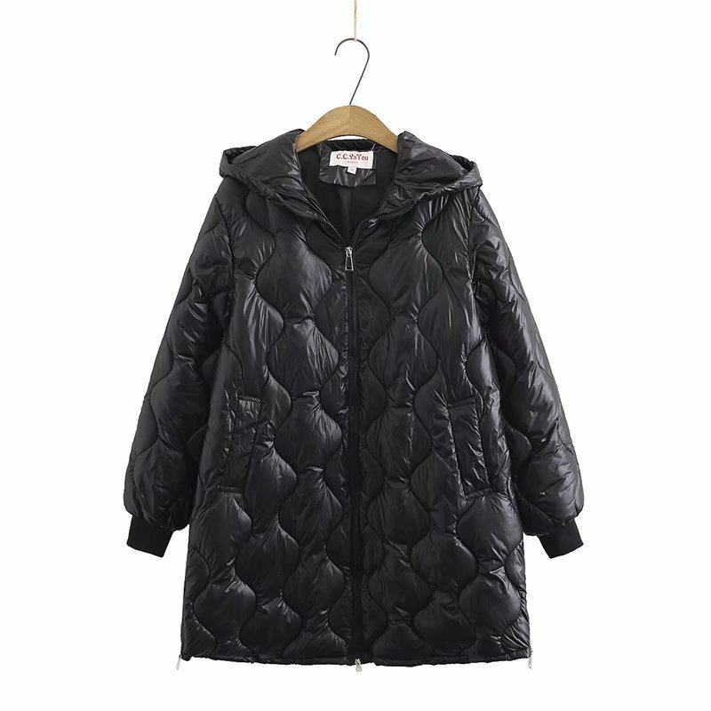 2025新款A字板羽绒棉服女装中长款收腰显瘦连帽棉衣冬季加厚外套