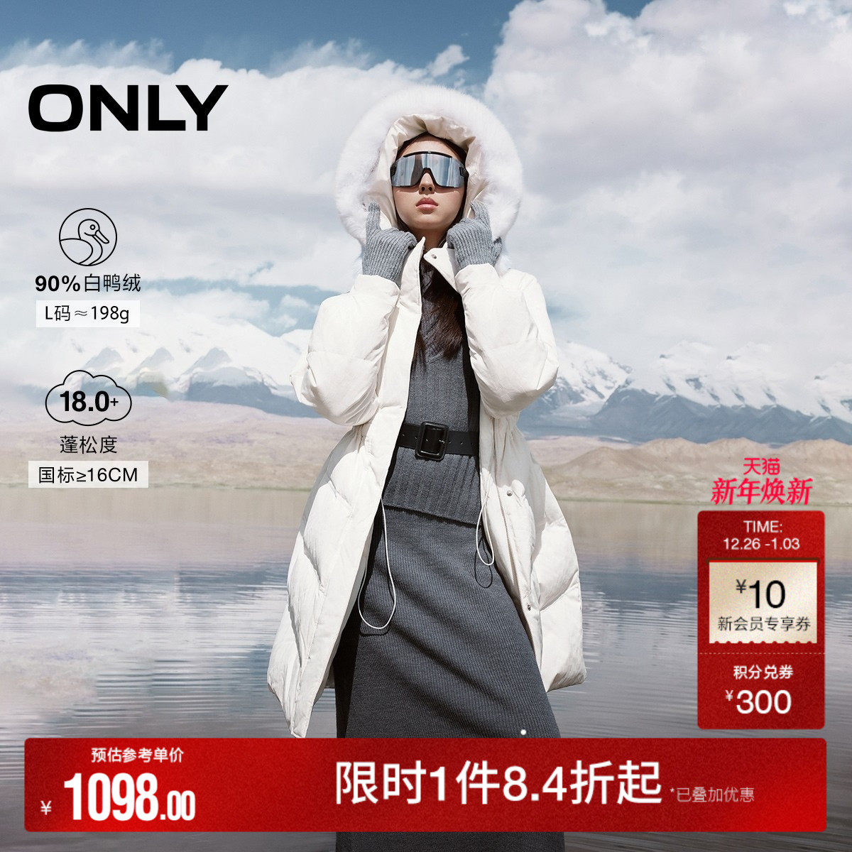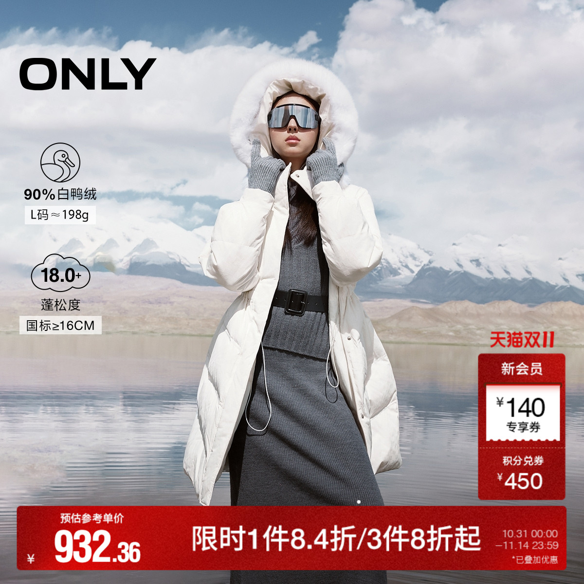 【ONLY奥莱】冬季新款90白鸭绒抽绳A字毛领中长款羽绒服女