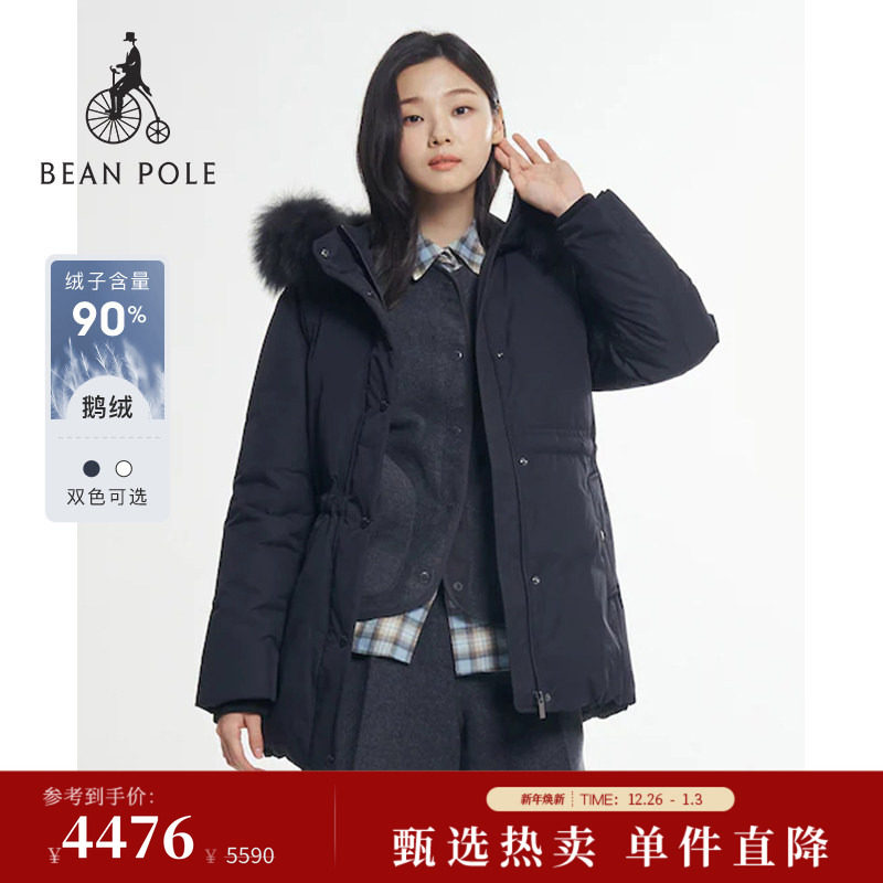 【新品】90%鹅绒BEANPOLE滨波秋冬女柔系A字型无绗缝中长款羽绒服