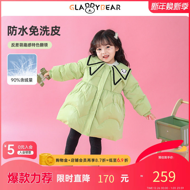 儿童羽绒服中长款A字连帽白鹅绒服防水耐脏轻便保暖女童冬装经典