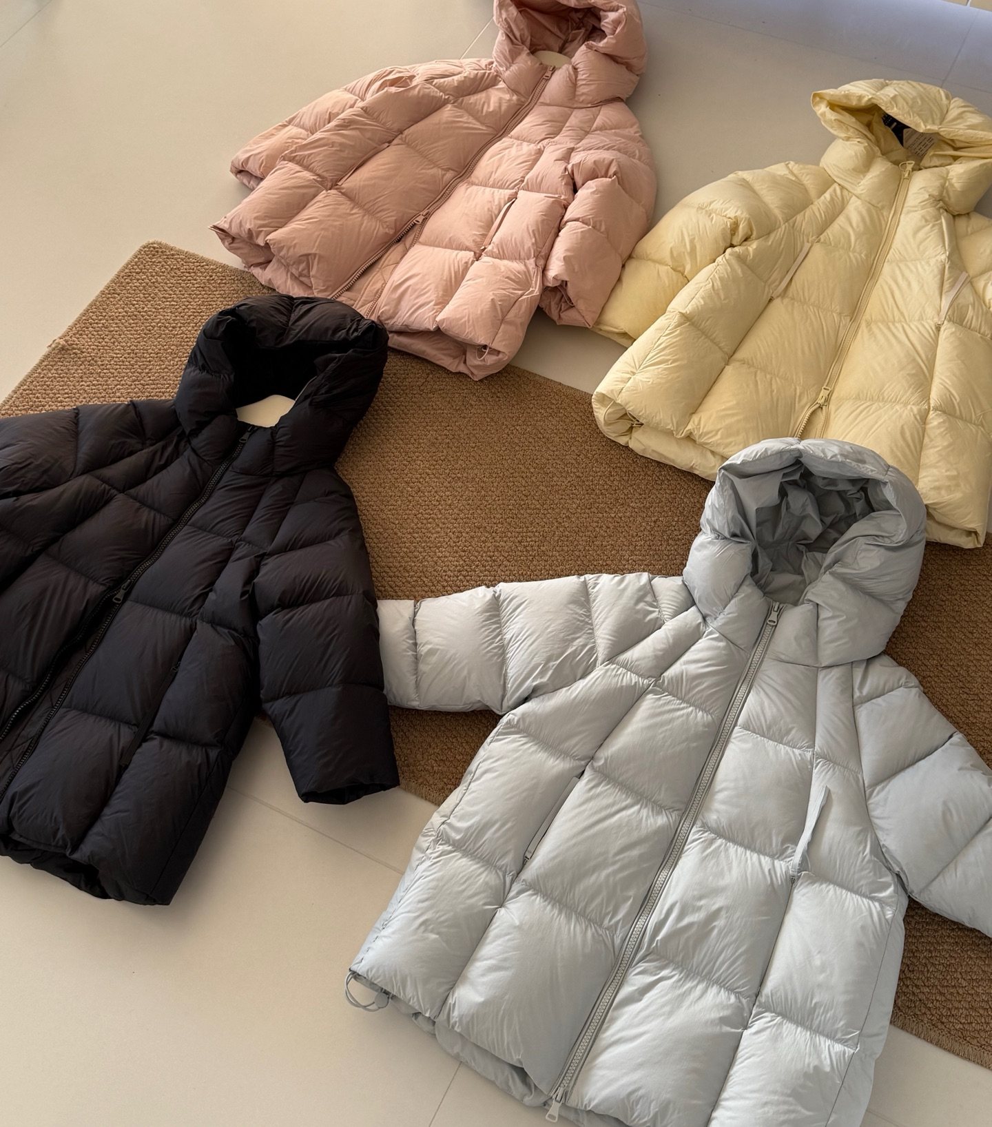 Juicefish云朵轻软!90鹅绒su羽绒服A字版娃娃款亮面连帽中长款女