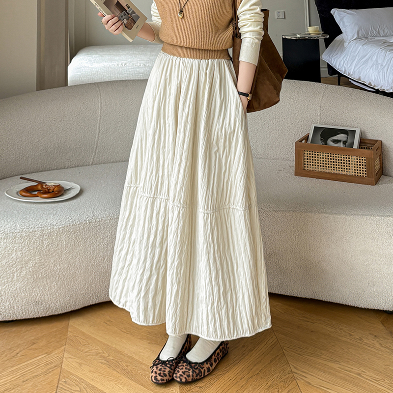 工装风加厚夹棉高腰半身裙女2025秋冬新款中长款A字羽绒棉服裙子
