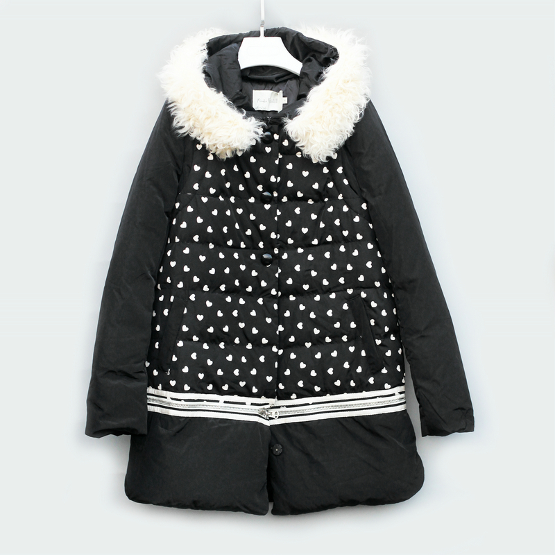 圣迪家女式字母贴布A字版连帽工装防风中长款斗篷羽绒服2416