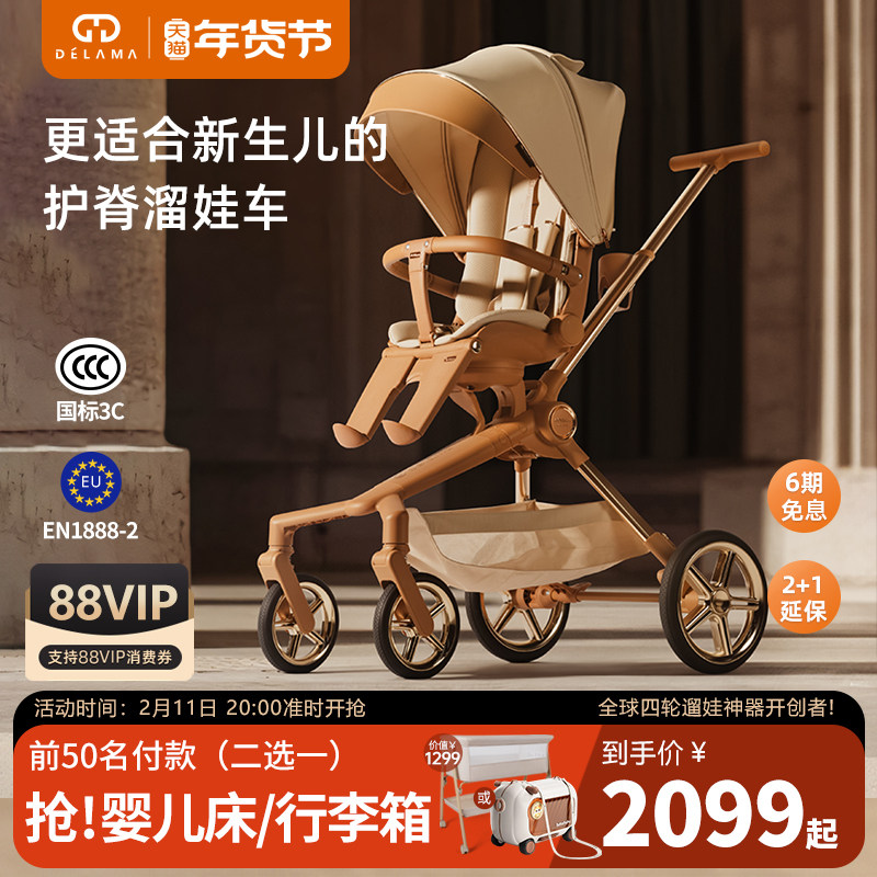 德拉玛Q2遛娃神器可坐可躺双向折叠高景观溜娃婴儿车手推车轻便