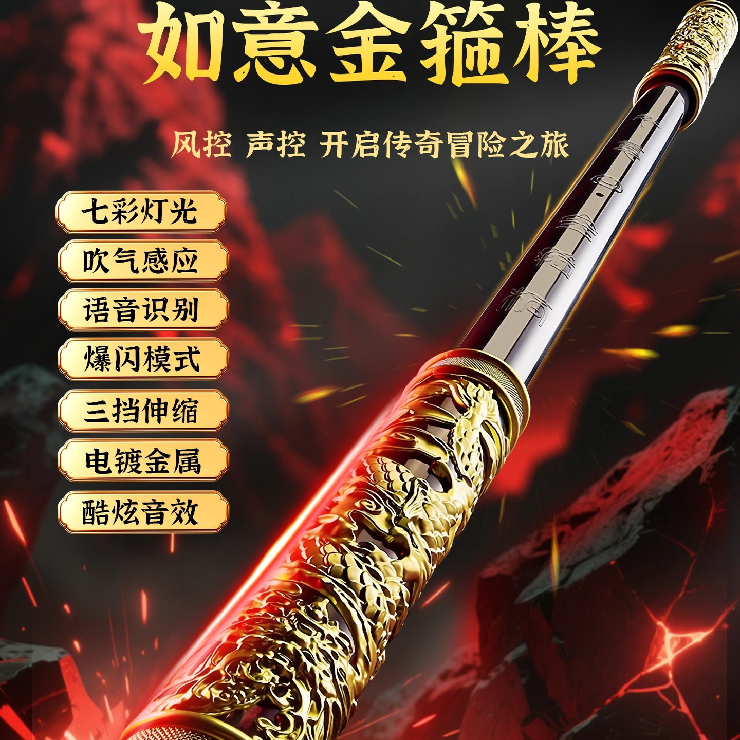 新款声控变大如意金箍棒玩具自动可伸缩发光男孩子黑神话礼物玩具