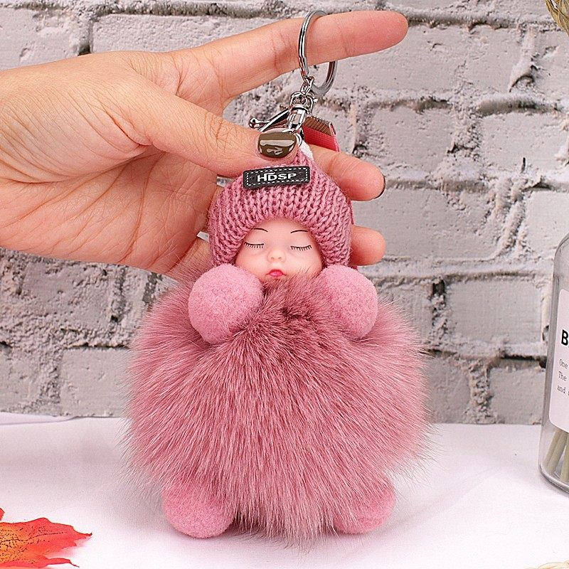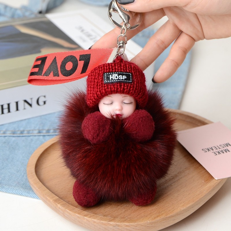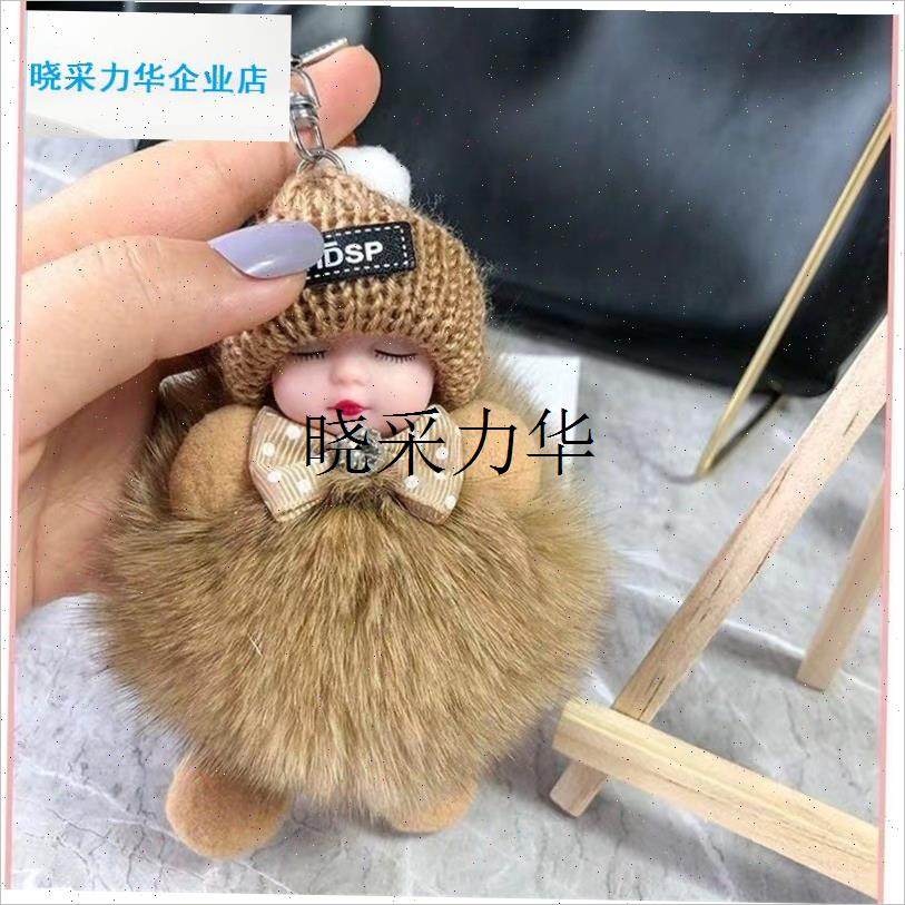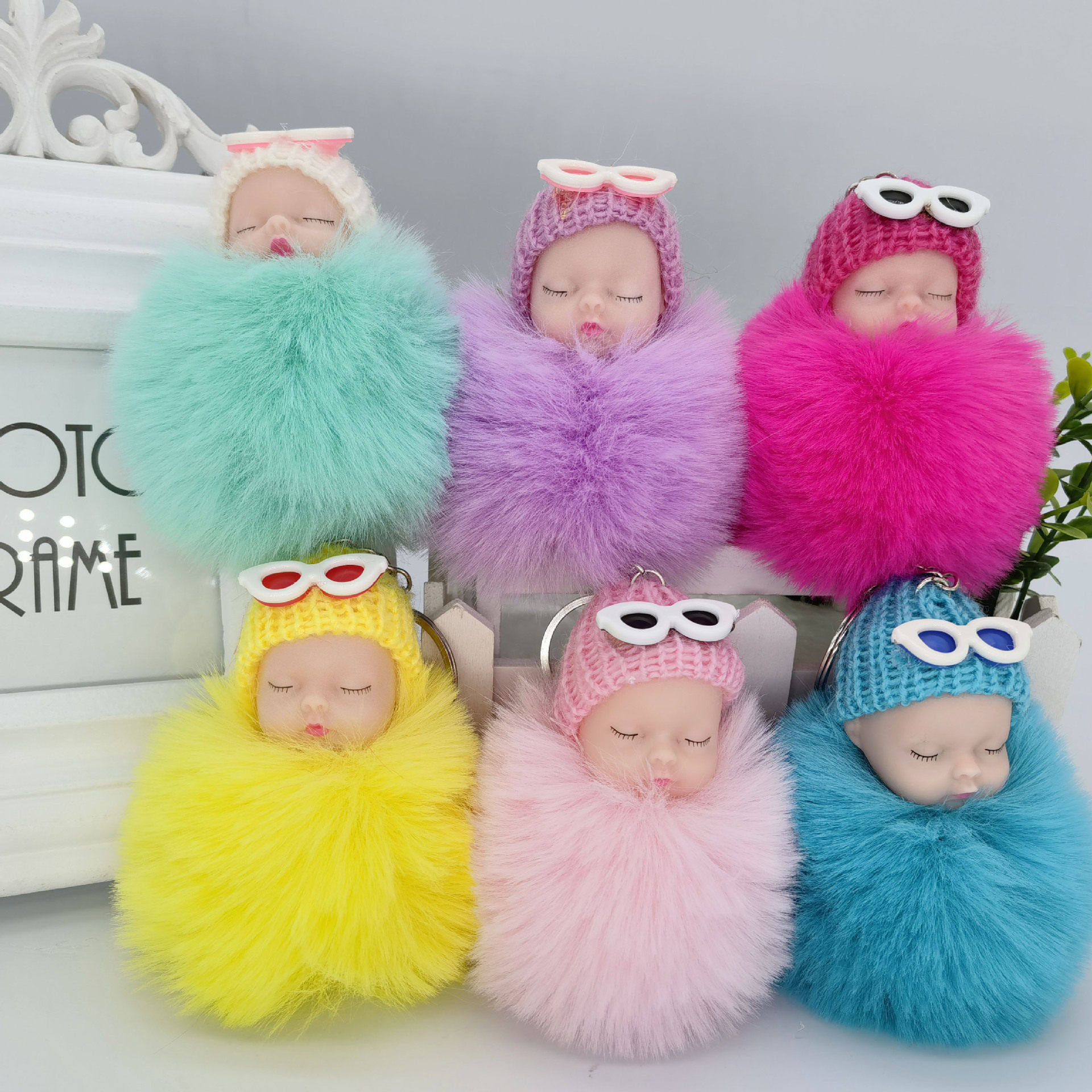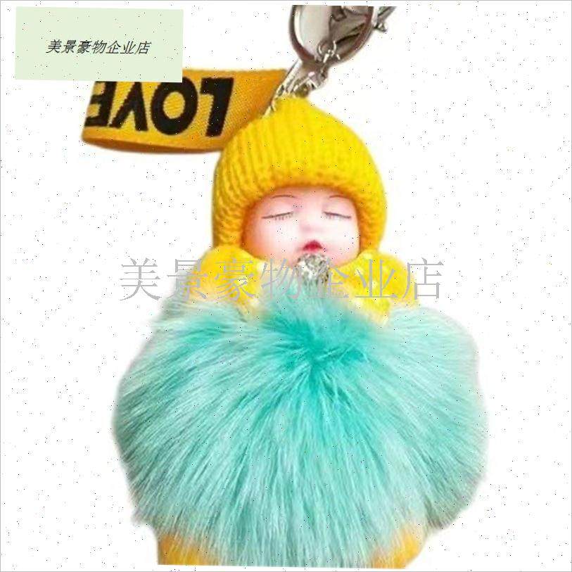 可爱睡眠娃娃毛球钥匙扣仿獭兔毛萌睡卡通宝宝包包挂件汽车礼品女