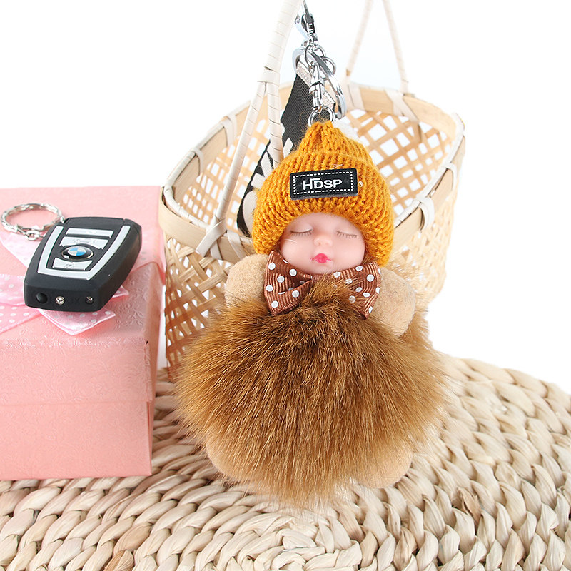 可爱睡眠娃娃宝宝钥匙扣韩国卡通汽车钥匙链毛绒公仔高档女士挂件