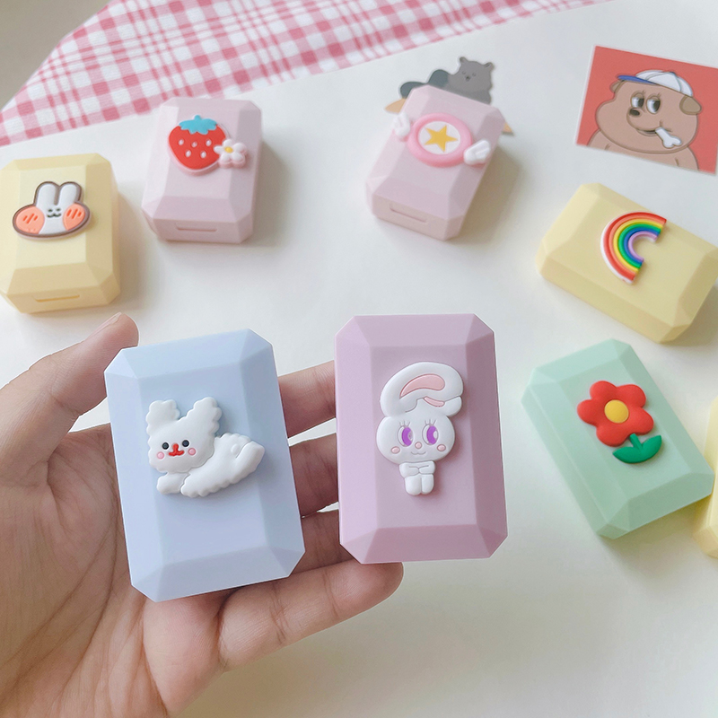 美瞳收纳可爱盒子ins超薄卡通近视透明按扣小巧轻便携隐形眼镜盒