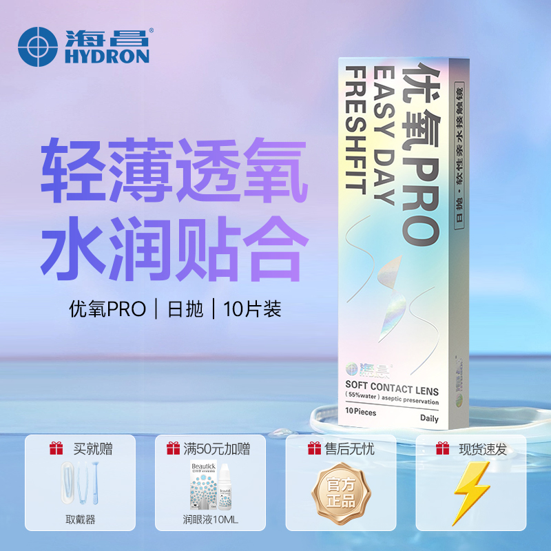 海昌隐形眼镜日抛10片装优氧PRO非美瞳高清水润透明舒适超薄正品