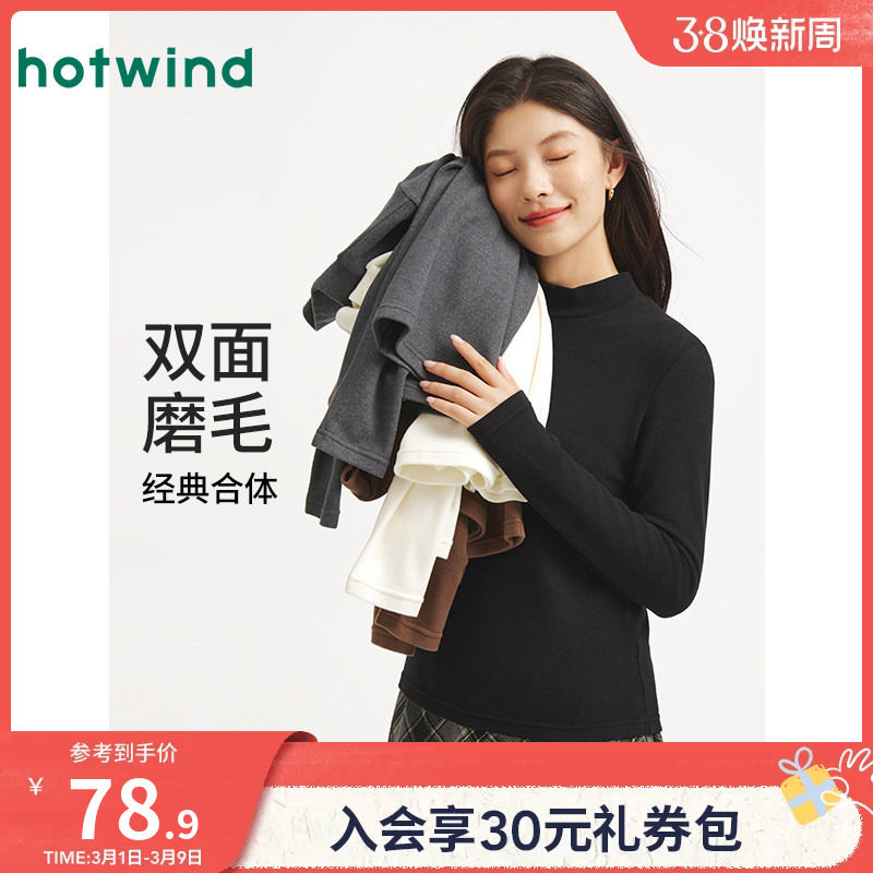 热风半高领长袖t恤2025年冬季新款女士修身高弹双面磨毛基础上衣