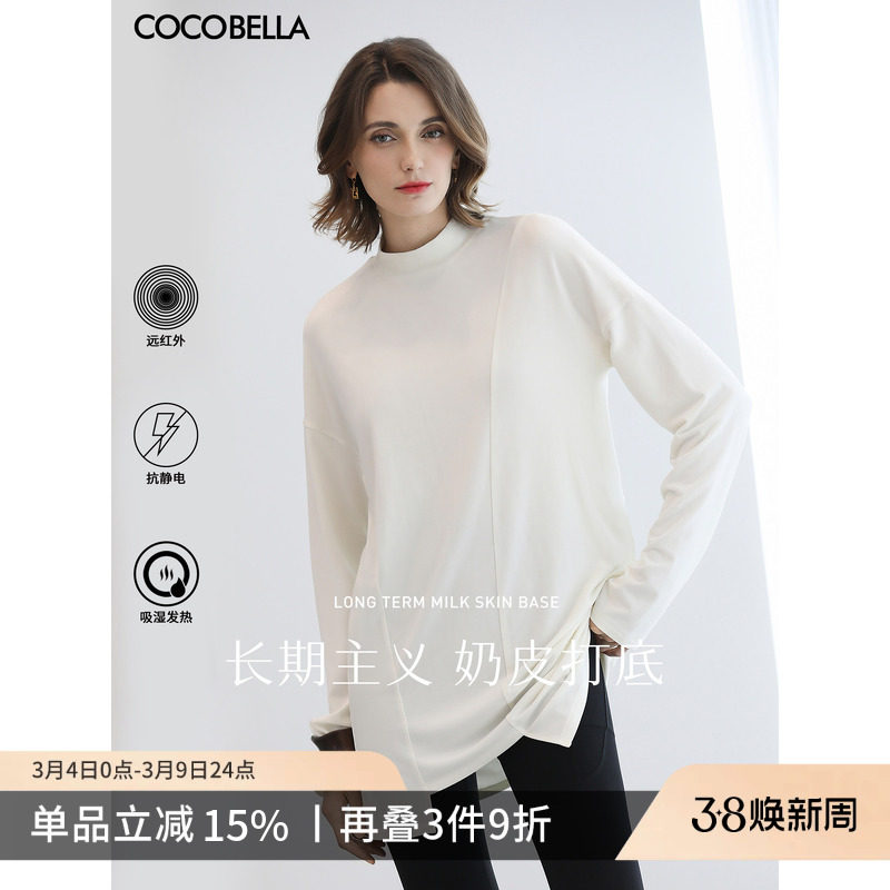 COCOBELLA不规则打底针织衫抗静电吸湿发热白色高领长袖T恤UT0005