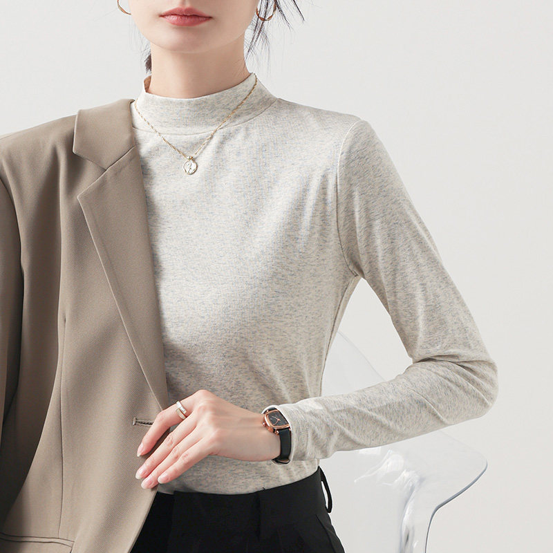 浅灰小立领打底衫内搭可外穿花灰半高领长袖t恤女修身春秋上衣女