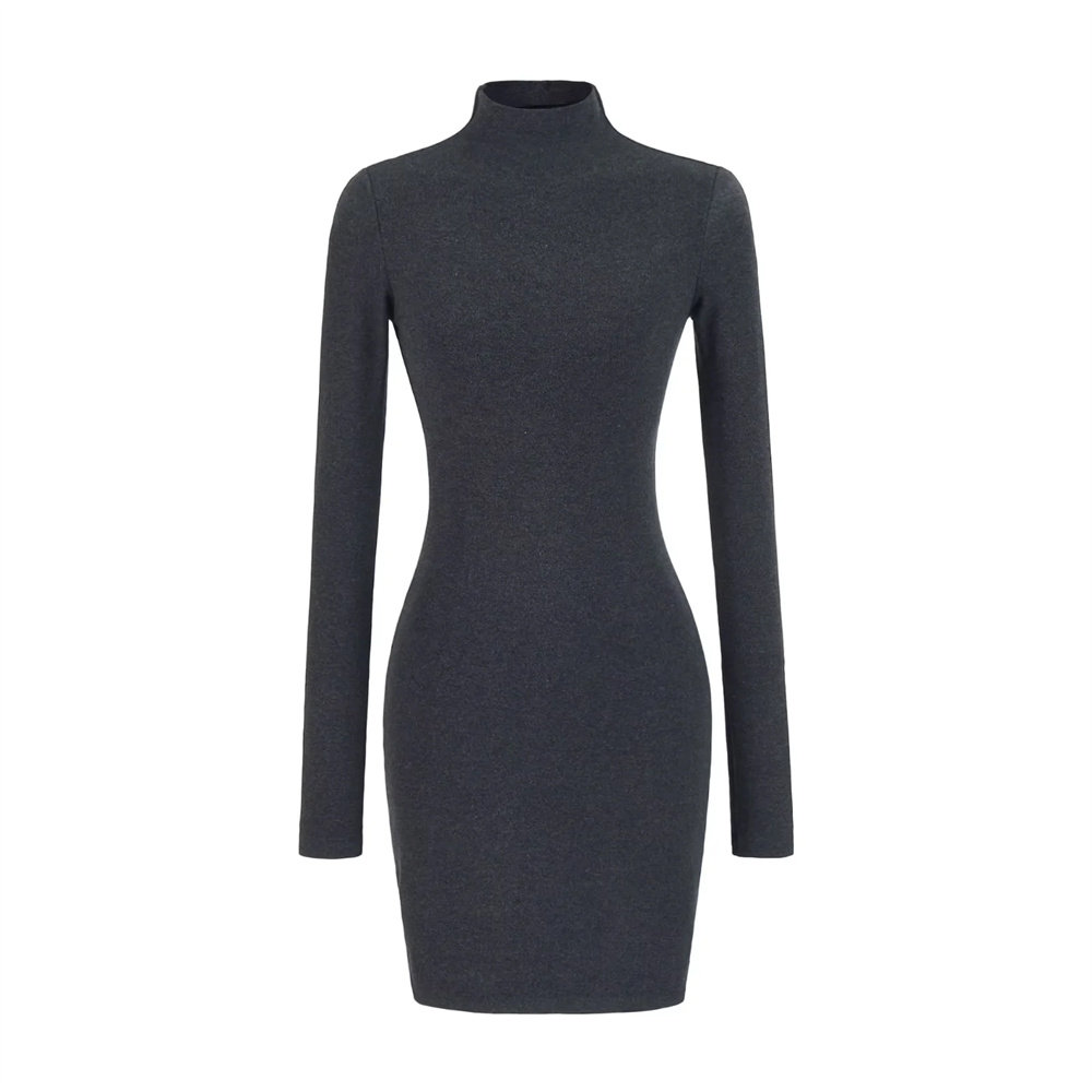 辣妹高领长袖加绒连衣裙女2025新款秋冬季紧身性感包臀打底裙短裙