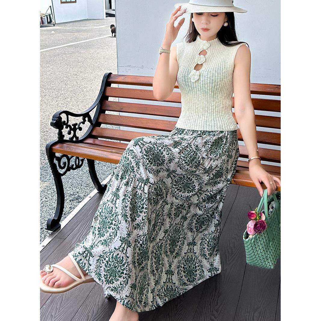 2024夏季新款女印花雪纺大码半身裙长裙高腰跳舞沙滩A字裙时尚裙