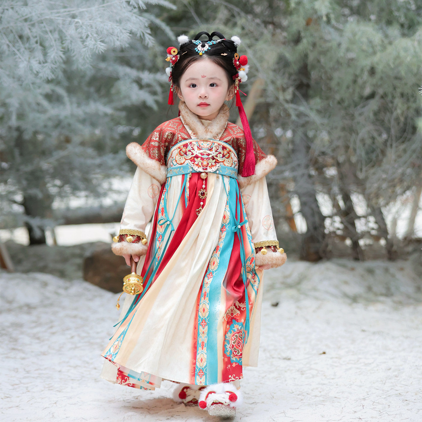 汉服女童2025冬装儿童宝宝国风加加厚绒连衣裙女孩古风唐装拜年服