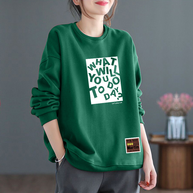 - 韩版宽松加绒卫衣女