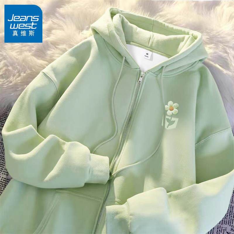 - 纯色卫衣外套女拉链