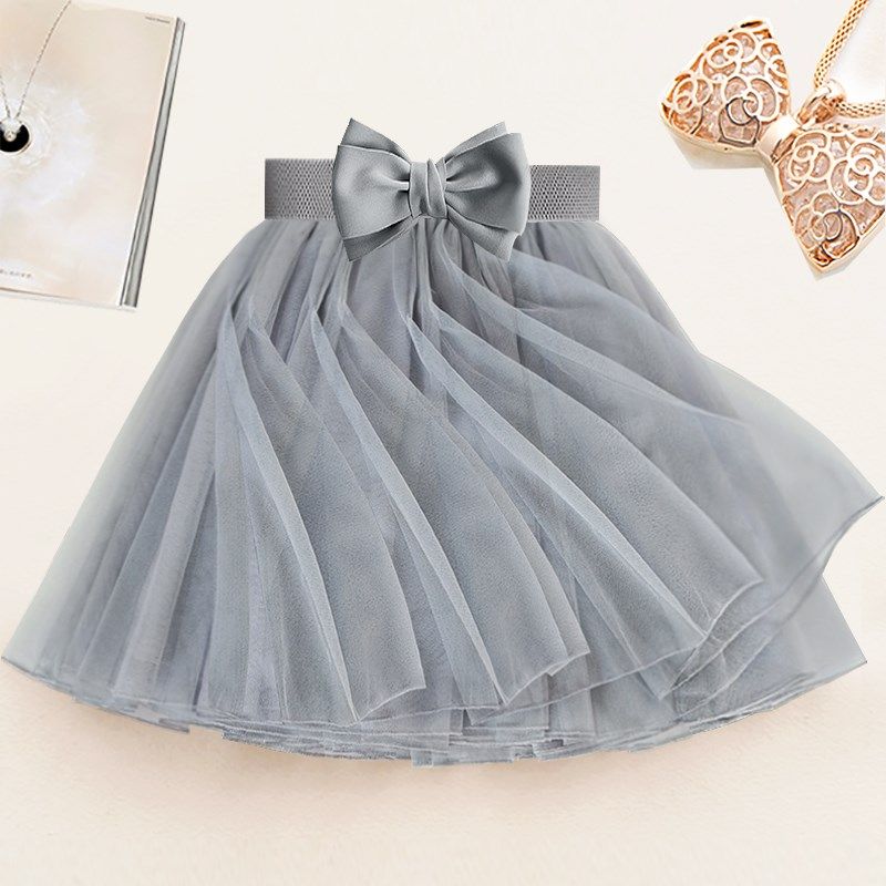 灰色网纱蓬蓬半身裙夏季仙女公主纱裙小个K子显瘦成人蛋糕蕾丝短