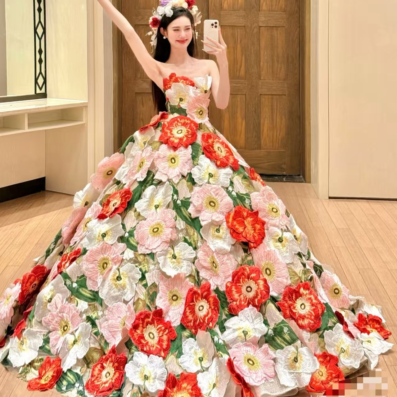 新娘花朵婚纱蓬蓬裙欧美时尚女神生日钢琴年会晚礼服成人礼公主裙