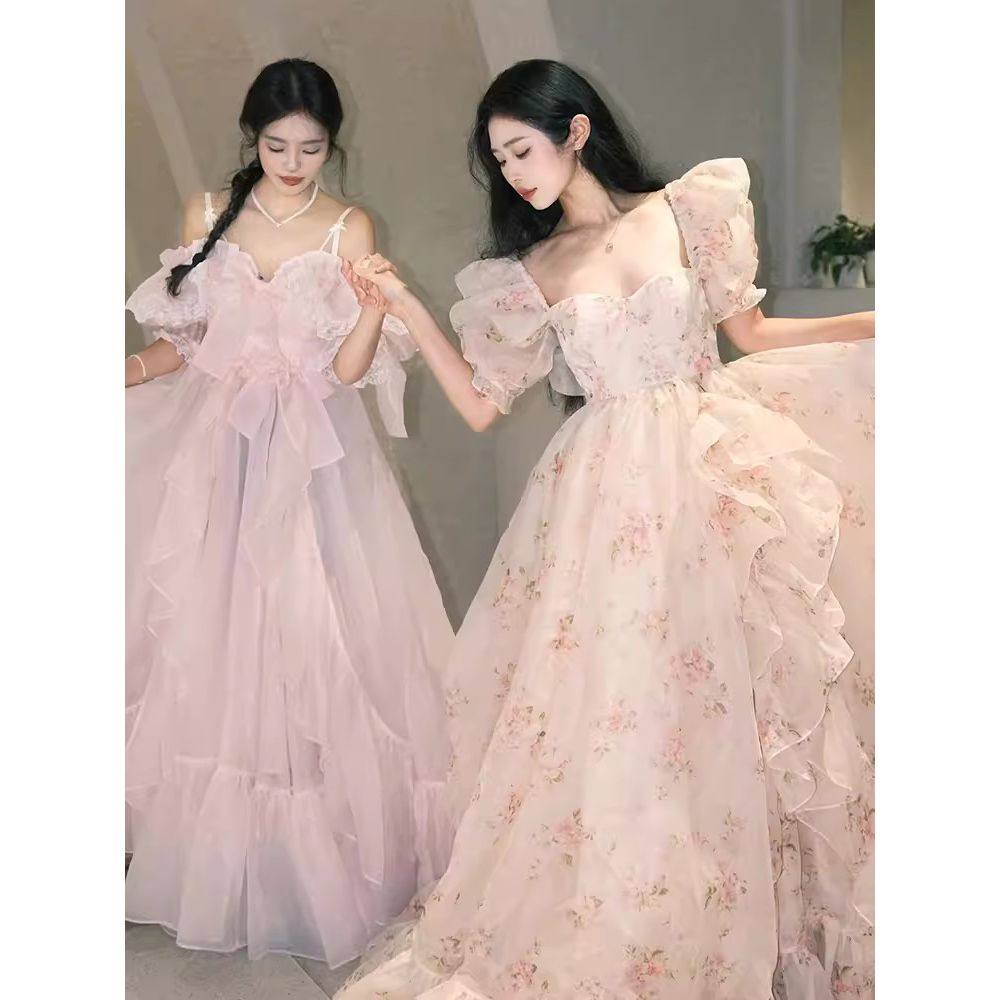 在逃公主连衣裙女高级感仙女蓬蓬裙成人礼礼服粉色碎花生日小礼裙