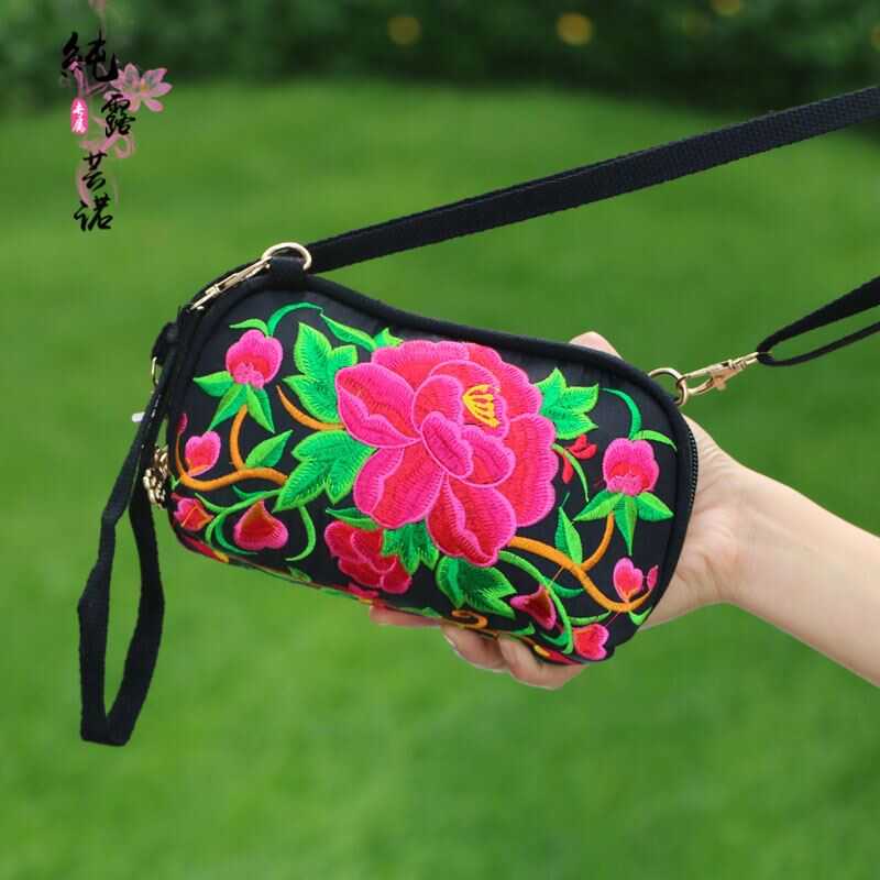 民族新款收纳手提包零钱提花双面金丝刺绣手机帆布包上班外出拎包