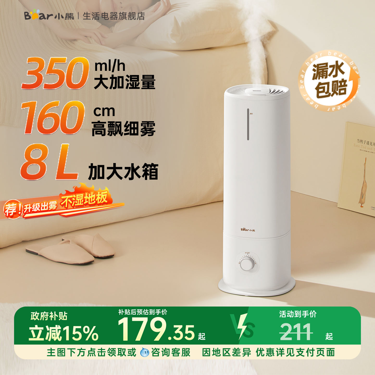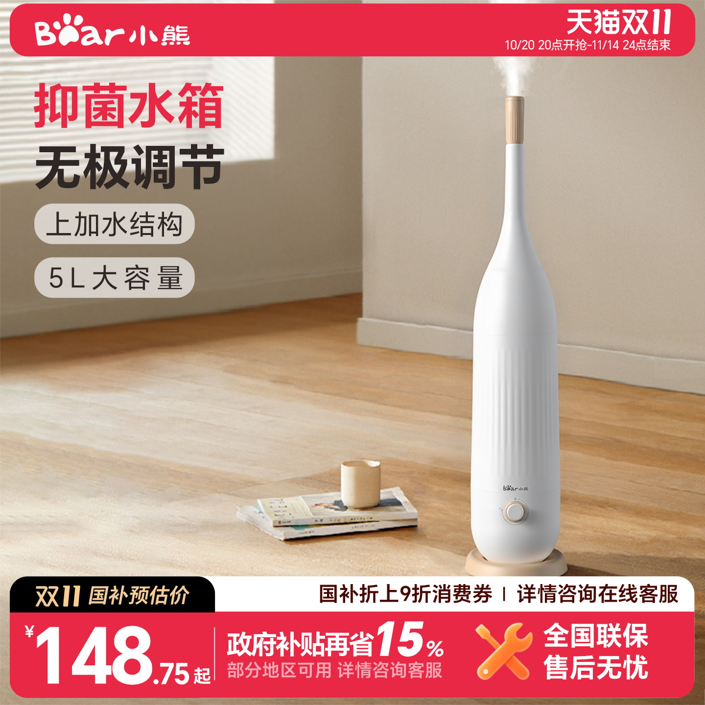 小熊加湿器落地式卧室家用大雾量5L上加水加湿器增湿器原装正品