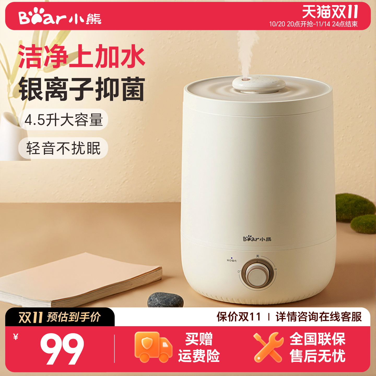 小熊加湿器家用大容量上加水桌面式UV杀菌轻音空调卧室细雾喷雾机