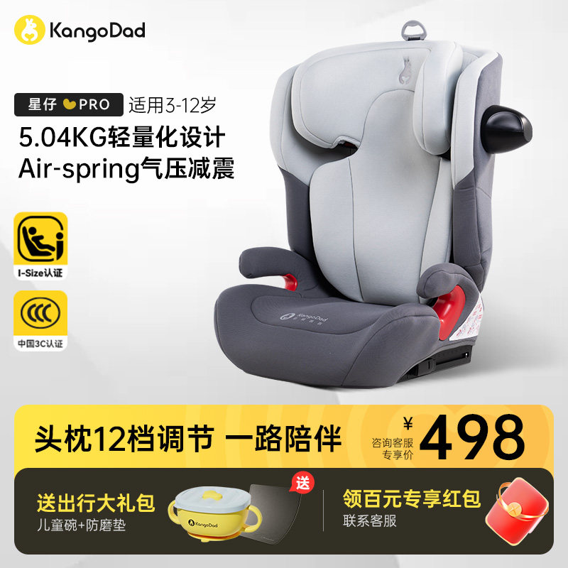 袋鼠爸爸星仔PRO大童安全座椅3-12岁儿童汽车用Isize车载宝宝座椅