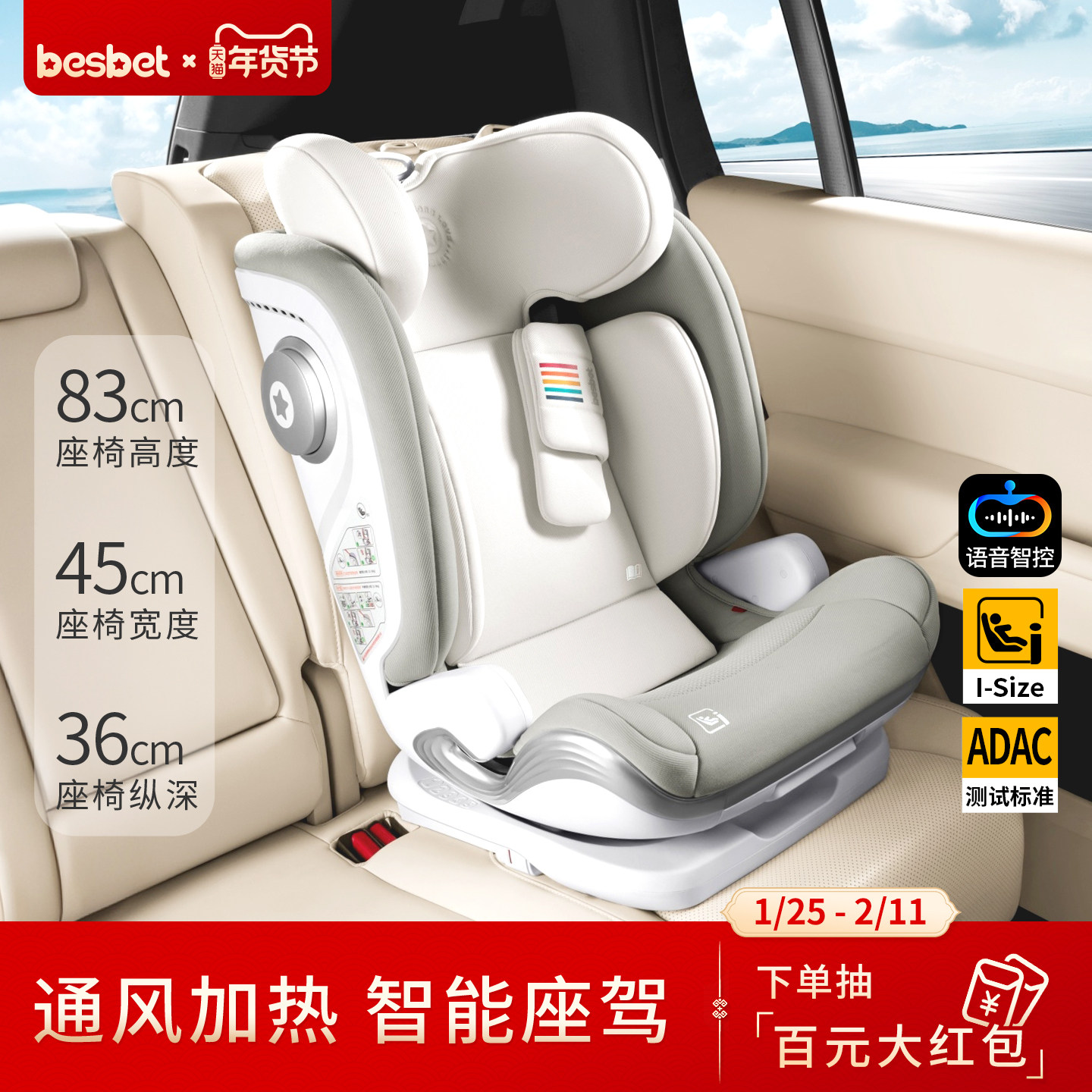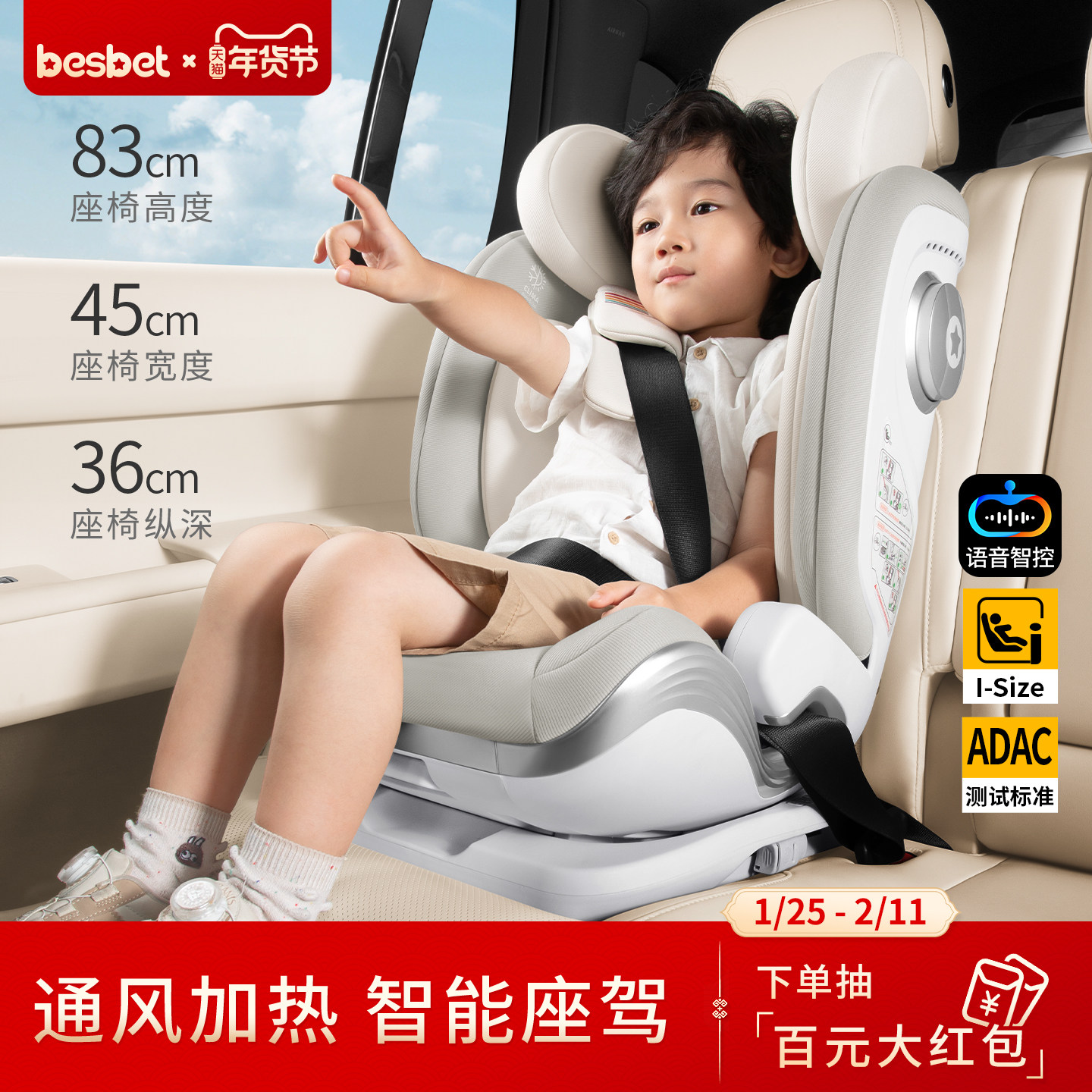 besbet阳光号儿童安全座椅汽车用3-12岁大童车载智能通风加热