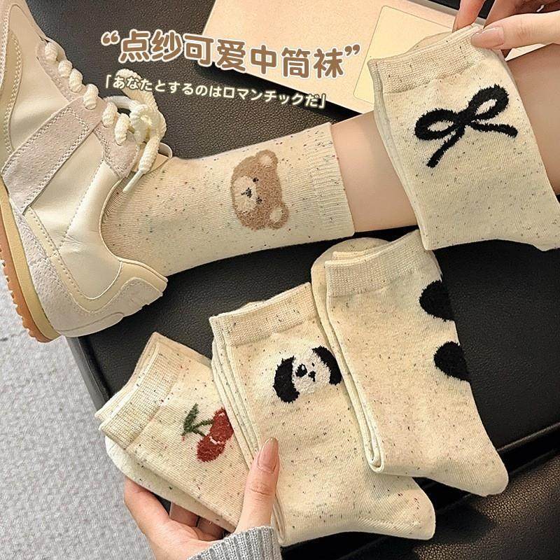 可爱袜子女中筒袜点子纱保暖秋款小熊ins潮韩国卡通日系彩点冬