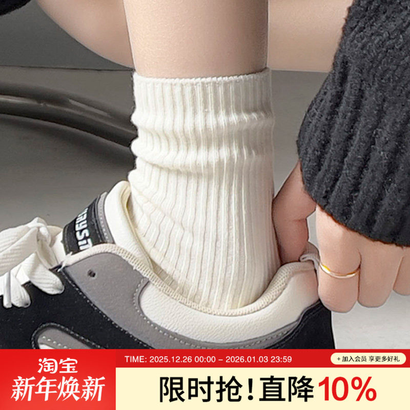 白色堆堆袜子女中筒袜秋冬季纯棉ins潮秋冬季乐福鞋jk无骨长筒袜