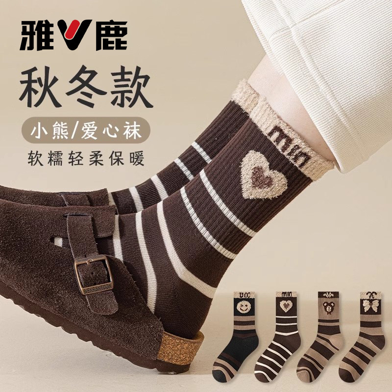 雅鹿袜子女中筒袜ins卡通加厚羽毛纱防臭保暖长筒冬季百搭不臭脚