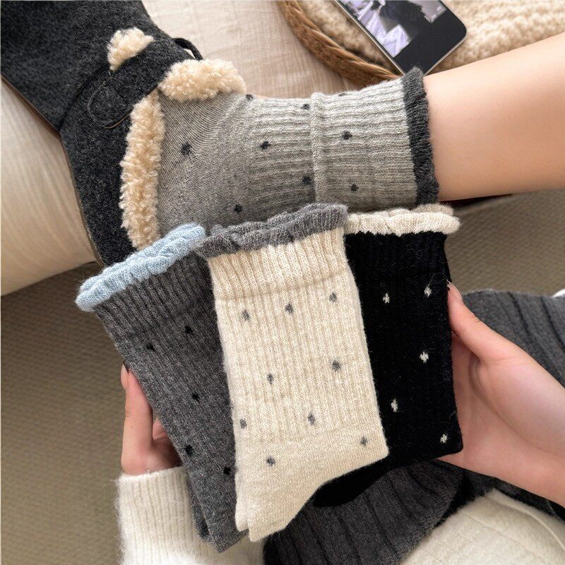 波点袜子女中筒袜秋冬季百搭保暖加厚灰色长袜配勃肯鞋冬天堆堆袜